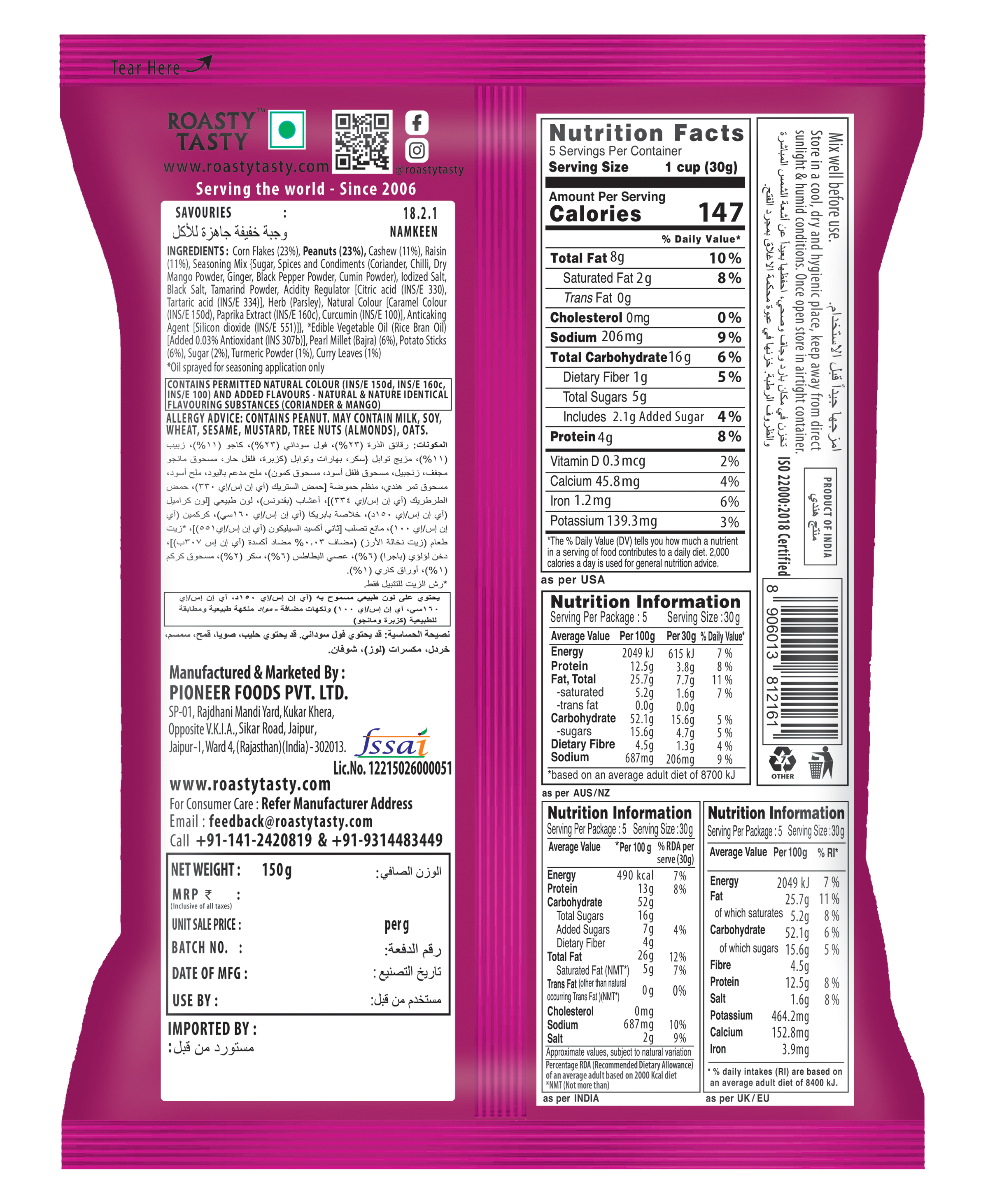 Guilt free millet crunch (100% roasted namkeen, non fried): Elevate your snacking game with our authentic Indian namkeen in roasted avatar – cornflakes mixture, a replacement of fried namkeen & bhujia; unique millet namkeen, crafted from roasted bajra puffs, peanuts