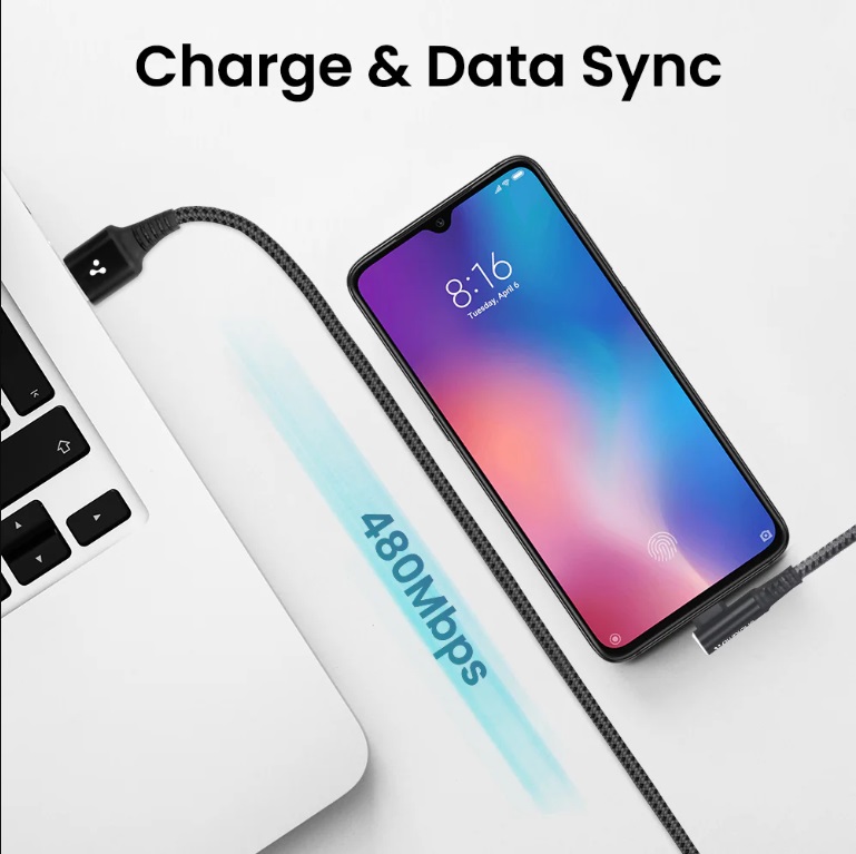 L-Shape Type C Cable 1.5m L Shaped Type C Cable 3A BoostedSpeed™ Unbreakable Braided Cable
